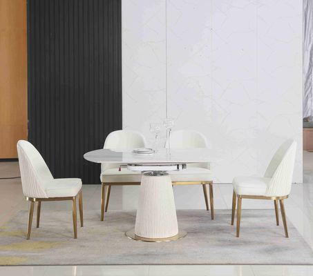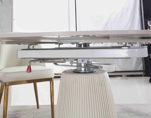 Tavola rotonda piegante telescopica contratta bianca allungabile con 6 sedili per sala da pranzo