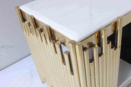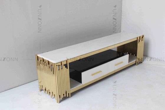 Acciaio inossidabile di marmo bianco del piano d'appoggio della Tabella di lusso dell'oro TV con i cassetti per il salone