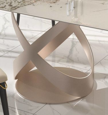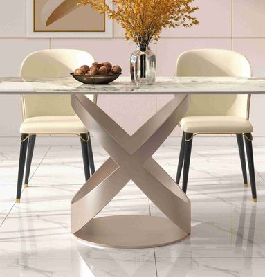 Insieme di lusso del tavolo da pranzo con X la base di acciaio inossidabile