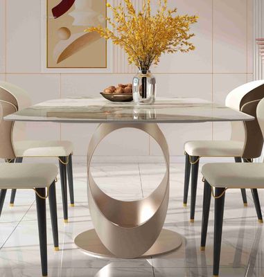 Vantandosi con il ripiano del tavolo rotondo delicato della pietra angolare e una base stabile di acciaio inossidabile di X, aggiunge un tocco raffinato al vostro insieme della sala da pranzo.