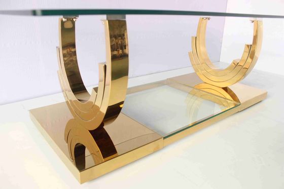 La mobilia di Yunzhang dedica per fabbricare il prodotto moderno e durevole a tutti i clienti, questo modello della base a forma di U di stile dell'America è molto adatto ad uso del salone ed usiamo l'oro del Ti di vuoto in modo dal prodotto può continuare splendere l'oro a lungo. Questo tavolino da salotto è un pezzo accessorio moderno perfetto per il vostro salone, vantantesi un pezzo di ripiano del tavolo di vetro trasparente spazioso per visualizzare per decorare gli oggetti. Finito nel colore dell'oro, la struttura della tavola utilizza il tubo spesso per aggiungere la stabilità.