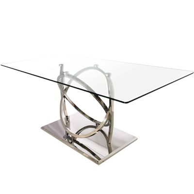 Tavolo da pranzo d'argento di lusso del metallo con vetro trasparente per sala da pranzo