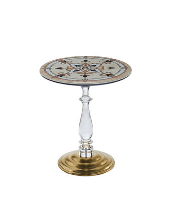 Un end table è un piccolo tavolo collocato tipicamente accanto a un divano o poltrona in un soggiorno o in una camera da letto.I tavolini sono spesso utilizzati per contenere le lampade, telecomandi, bevande, libri o oggetti decorativi.