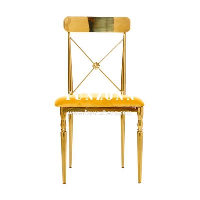 | Nome del prodotto: | Vendita calda Festa di banchetto Affitto oro hotel in acciaio inossidabile Sedie matrimoniali per sale eventi |
