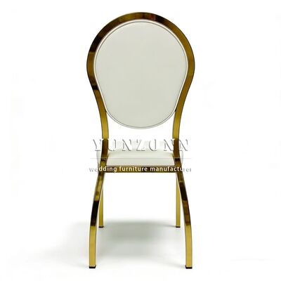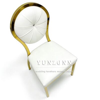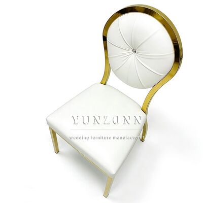 Sedia da hotel per matrimoni in acciaio inossidabile con schienale rotondo per eventi caldi, design dorato, per feste, all'ingrosso, in fabbrica, sedia con schienale in acciaio per banchetti di hotel |