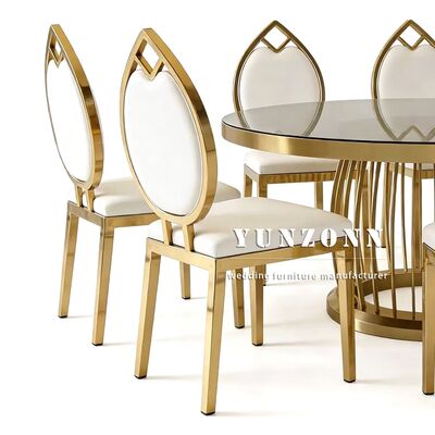 | Nome del prodotto: | Cornice in acciaio inossidabile in oro pelle Re Regina Sposa Festa di lusso Chaise Evento Sedie da sposa bianche |