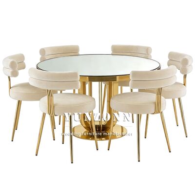 Q3: Qual è il materiale dei vostri prodotti? A3: Cornice in acciaio inossidabile per tavolo e sedia, vetro rinforzato sul tavolo; marmo o legno.