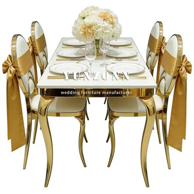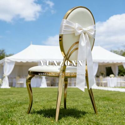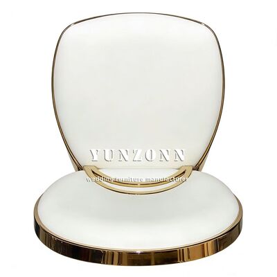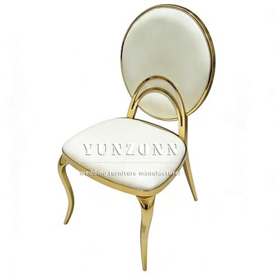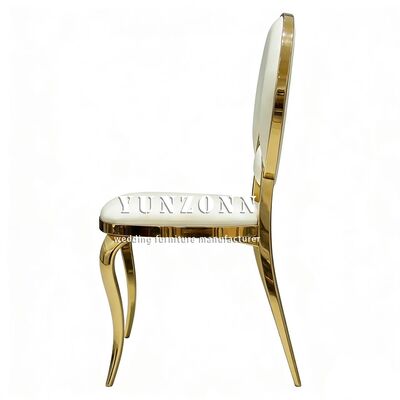 | Nome del prodotto: | Sedia da pranzo rotonda in acciaio inossidabile dorato con cuscino in PU bianco per eventi di nozze in hotel economici, sposi |