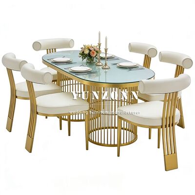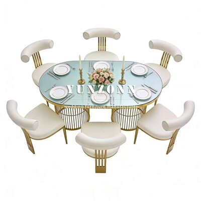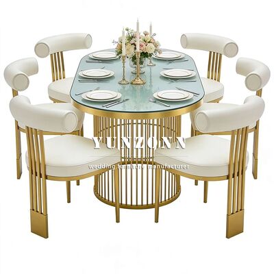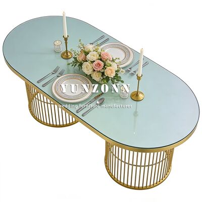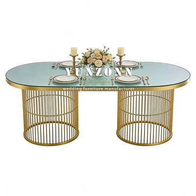 | Nome del prodotto: | Ristorante in acciaio inossidabile di lusso Banchetto festa Modern Dining Wedding Vetro temperato Tavolo durevole |