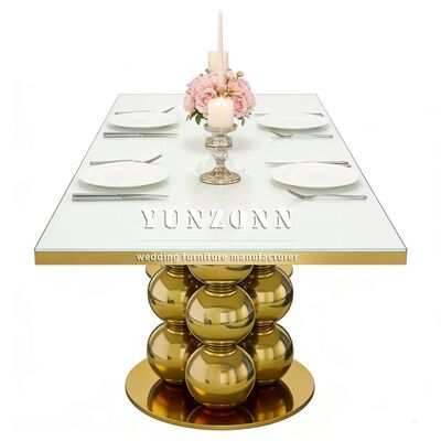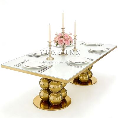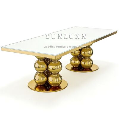| Nome del Prodotto: | Design di Lusso Moderno Tavolo da Matrimonio Dorato Specchio Piano in Vetro Acciaio Inossidabile Ristorante & Hotel Arredamento Sala da Pranzo per Banchetti |