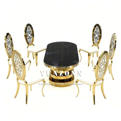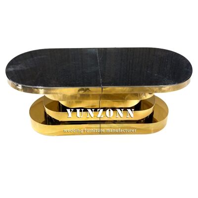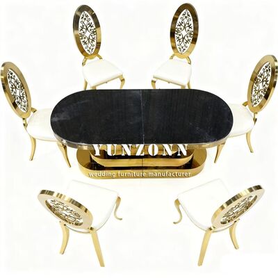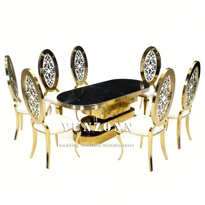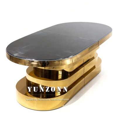 | Nome del prodotto: | Tavolo da pranzo per feste in acciaio inossidabile dorato con piano in vetro a specchio per matrimoni |