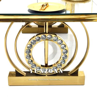 | Nome del prodotto: | Tavolo da banchetto Cornice in acciaio inossidabile Decorazione in cristallo per matrimoni Alberghi Eventi Specchiatura Tavolo da scrivania in vetro Arredamento alberghiero |