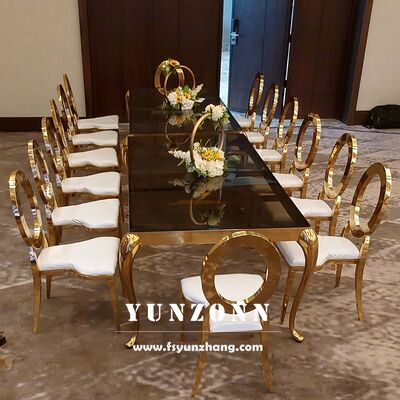 | Nome del prodotto: | Moderno tavolo da pranzo rettangolare con telaio in acciaio inossidabile e tetto in vetro per eventi all' aperto per matrimoni alberghi |