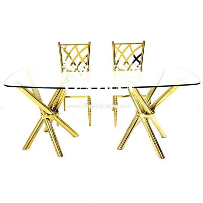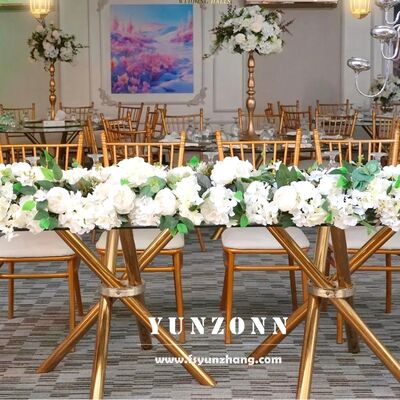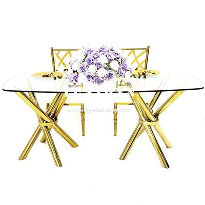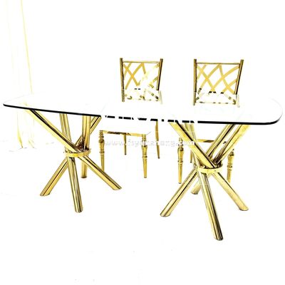 | Nome del prodotto: | Lightweight and Stable Cheap Golden Stainless Steel Cross-leg clear Glass Event Wedding Banquet Table |
