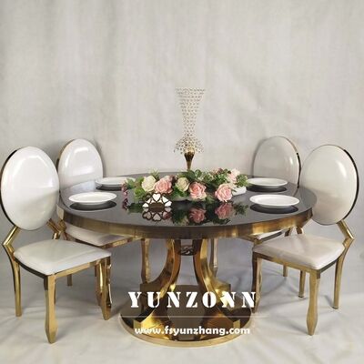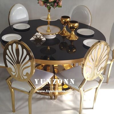 | Nome del prodotto: | Modello in acciaio inossidabile contemporaneo a misura Piedestal Gold Hotel Royal Restaurant Luxury Tavoli rotondi in vetro |