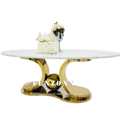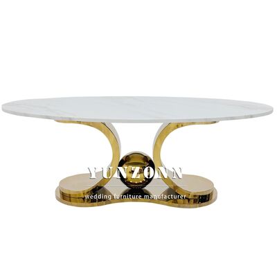 | Nome del prodotto: | Tavolo da caffè di lusso Arredamento alberghiero Tavolo marmoreo Top oro Metallo Acciaio inossidabile lato ovale Tavolo da caffè del tè |