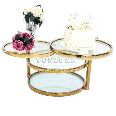 | Product Name: | Luxury Rotatable Stainless Steel & Gold Finish Round Coffee Table | Modern Glass Top | Customizable for Weddings/Events |