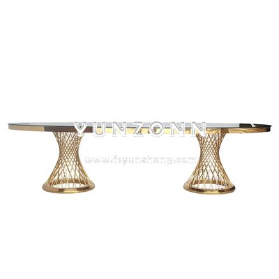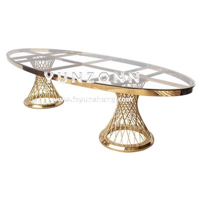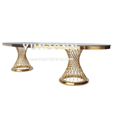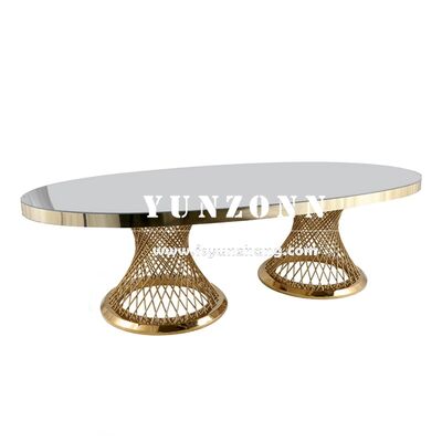 | Nome del prodotto: | Tavolo da pranzo ovale lungo di lusso in acciaio inossidabile per banchetti, matrimoni ed eventi in hotel |