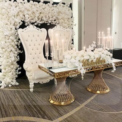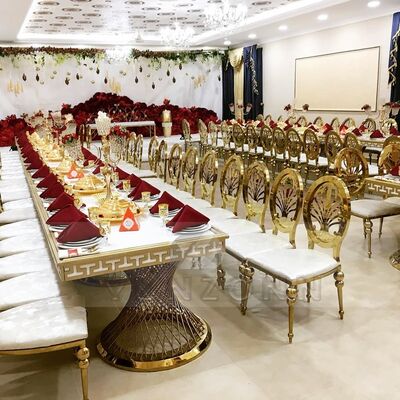 | Nome del prodotto: | Personalizza tavoli da sposa in acciaio inossidabile oro rettangolare Moderno design in metallo per la ristorazione Ristoranti Feste Alberghi Sale |