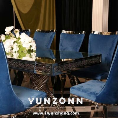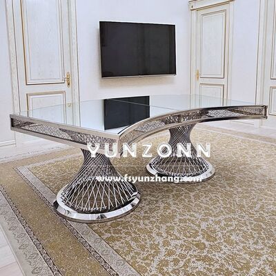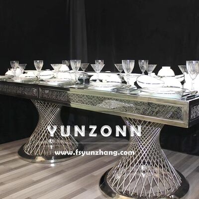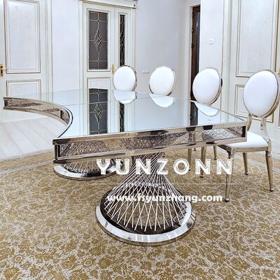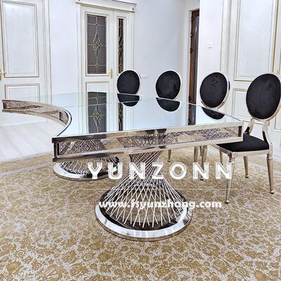 | Nome del prodotto: | Tavolo da pranzo Nest Base Double Pedestal con piano in vetro a specchio e centrotavola dorati per matrimoni e hotel |