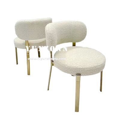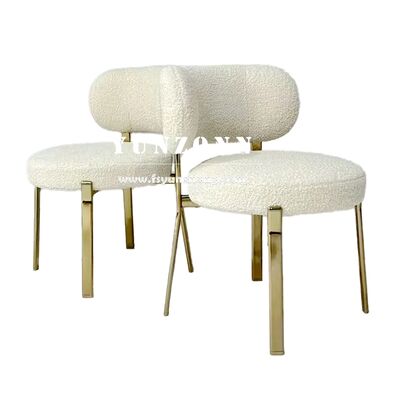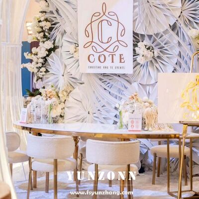 | Nome del prodotto: | Nuovo arrivo Alberghiera Sala Arredamento Fabbricazione Fornitura Tessuti bianchi Oro Acciaio inossidabile Cornice metallica Sedie di lusso impilabili |