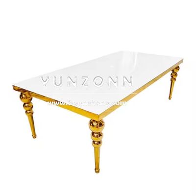 | Nome del prodotto: | Luxury MDF 12 posti oro metallo rettangolo banchetto tavolo da pranzo per alberghi elegante centro tavolo |