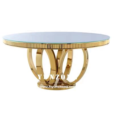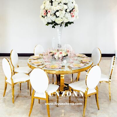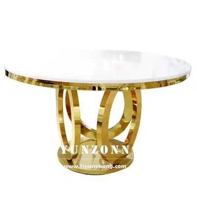 | Product Name: | White MDF Top round Golden Stainless Steel Metal Base Wedding Dining Table for Event Banquets Hotel Furniture | ||