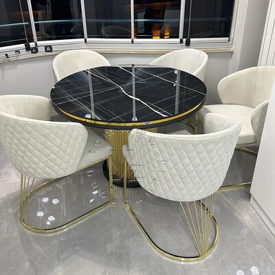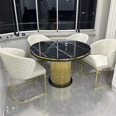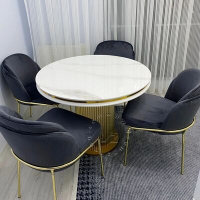 | Nome del prodotto: | Tavolo da pranzo in acciaio inossidabile oro moderno con piedistallo circolare Casa in marmo Villa Hotel Matrimonio Mobili contemporanei eleganti |