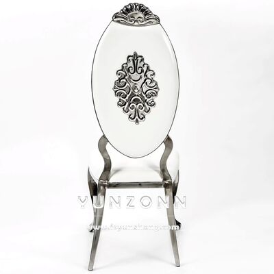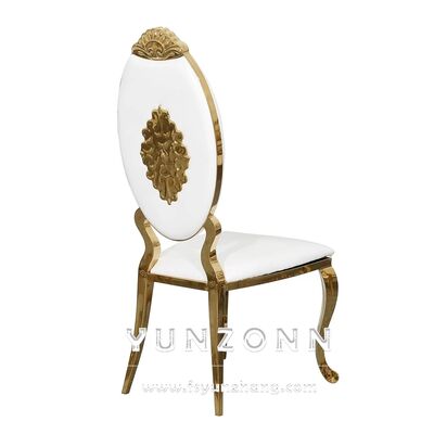 | Nome del prodotto: | Ingrosso banchetto alberghiero di alta qualità Sedile da pranzo cameriere di lusso in pelle di velluto per gambe metalliche sala da pranzo sedie da sposa in oro bianco |