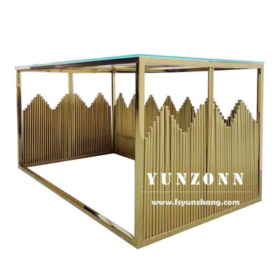 | Nome del prodotto: | Nuovo design Foshan Hotel Arredamento per matrimoni In acciaio inossidabile oro Sposa e sposo Tavolo da pranzo quadrato |