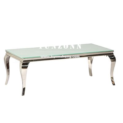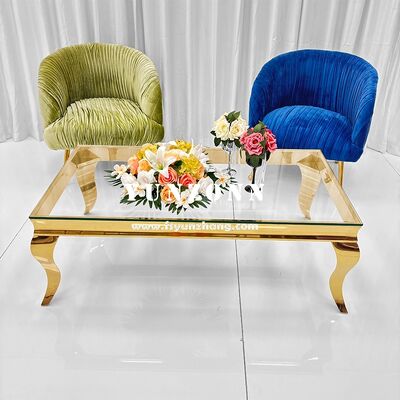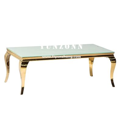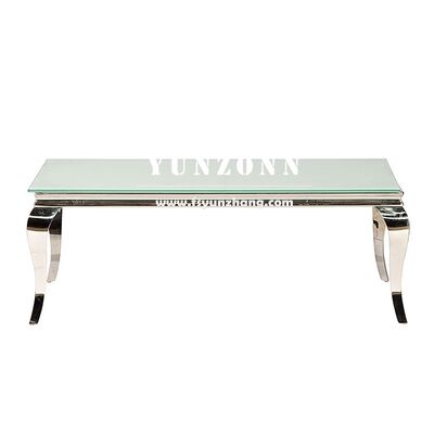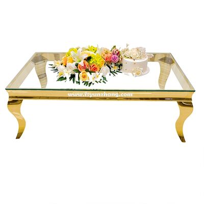 | Nome del prodotto: | Tavolino da caffè moderno di design per eventi nuziali, rettangolare, in acciaio inossidabile con piano in vetro a specchio |
