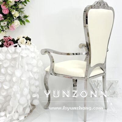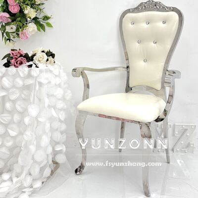 | Nome del prodotto: | Sedia da pranzo in acciaio inossidabile dorato stile reale, nuovo design con braccioli con bottoni in cristallo, per uso in ristoranti, matrimoni e hotel |