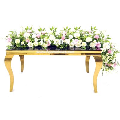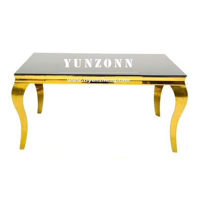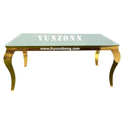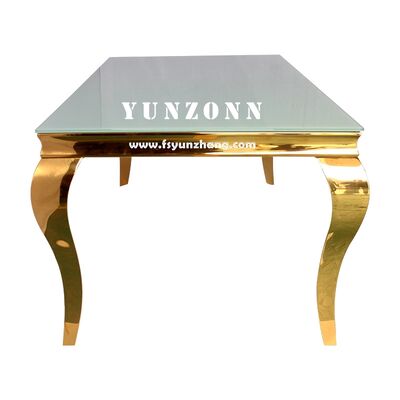 | Nome del prodotto: | Tavolo da evento per matrimoni di design moderno con piano in vetro a specchio e telaio rettangolare in acciaio inossidabile per hotel, mobili per hotel |