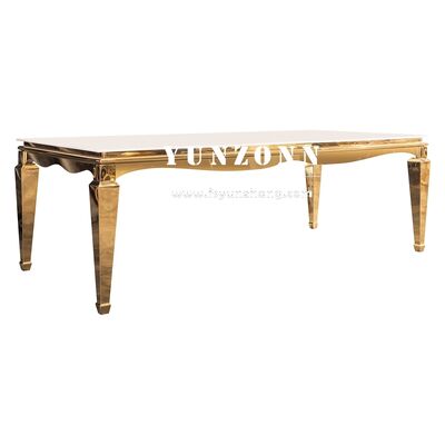 | Nome del prodotto: | Tavolo da pranzo moderno in acciaio inossidabile dorato con piano in vetro a specchio per hotel, matrimoni, feste, eventi all'aperto, uso come tavolo da banchetto |