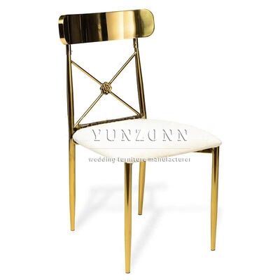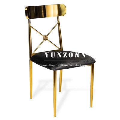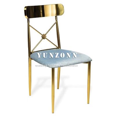 | Nome del prodotto: | Sedia da matrimonio in acciaio inossidabile di alta qualità con schienale incrociato per hotel, sala da pranzo per feste, sedia da ristorante dorata per eventi |