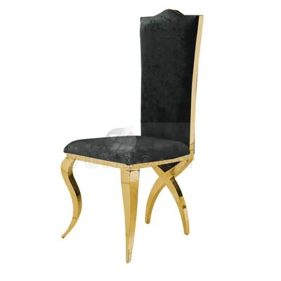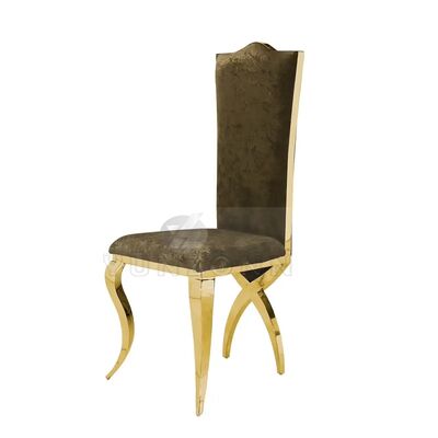 | Nome del prodotto: | Sedile da pranzo con schienale alto in acciaio inox dorato con gambe incrociate per alberghi e matrimoni |