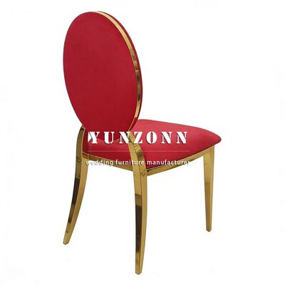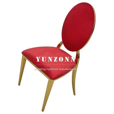 | Nome del prodotto: | Nuovo Modello Royal Gold Wedding Sedie rotonde con schienale in acciaio inossidabile con velluto rosso Stile moderno per eventi all'aperto Hotel Bar |