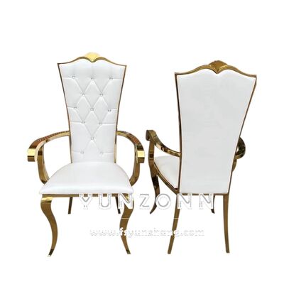 | Nome del prodotto: | Sedile da trono d'oro d'élite con braccialetto in acciaio inossidabile Sedile da evento in pelle di velluto moderno Nozze Banchetti Feste Alberghi Ville |