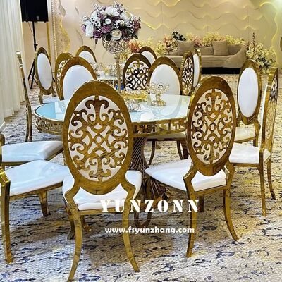 | Nome del prodotto: | Luxury Royal and Modern Gold Hotel Chairs with Special Carved Pattern Stainless Steel material for Wedding Dining Chair (Cassette da pranzo di lusso in oro reale e moderno) |