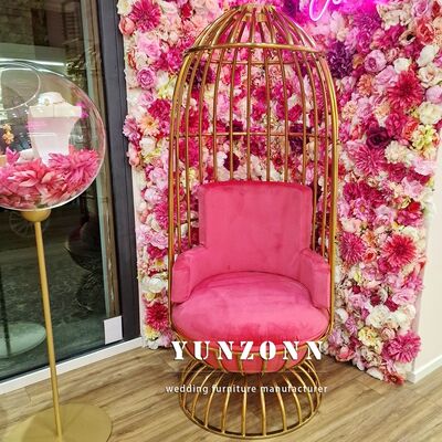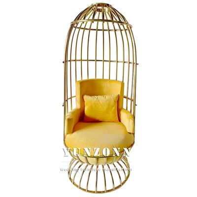 | Nome del prodotto: | King Gold Throne Chair con cuscino in acciaio inossidabile a forma di gabbia per uccelli in pelle di lusso per mobili per eventi in hotel o salotto |