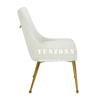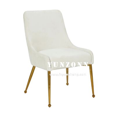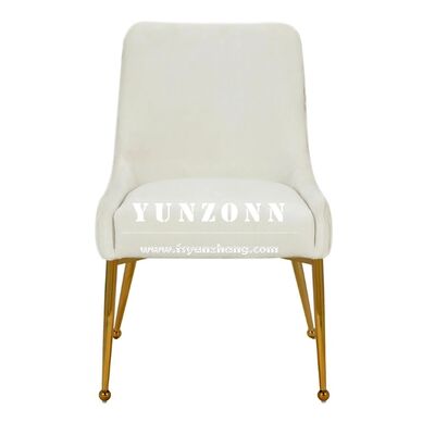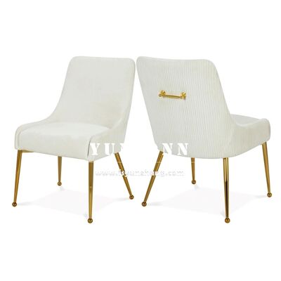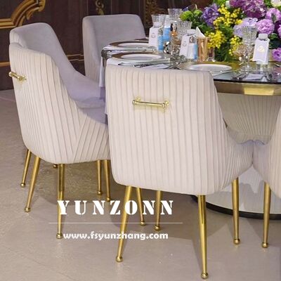 | Nome del prodotto: | Sedie da pranzo imbottite in velluto beige con maniglia tubolare in acciaio inossidabile dorato per hotel di lusso per sala da pranzo |